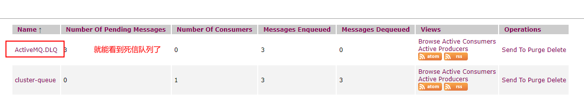 当一条消息被重发了多次以后(默认 6 次)将会被 mq 移入死信队列,开发人员可以在这个队列中查看处理出错的消息,进行人工干预