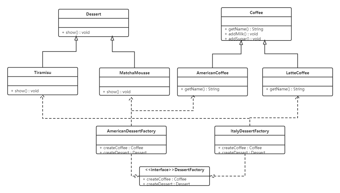 抽象工厂模式实现对产品家族的创建,一个产品家族是这样的一系列产品:具有不同分类维度的产品组合,采用抽象工厂模式则是不需要关心构建过程,只关心什么产品由什么工厂生产即可。