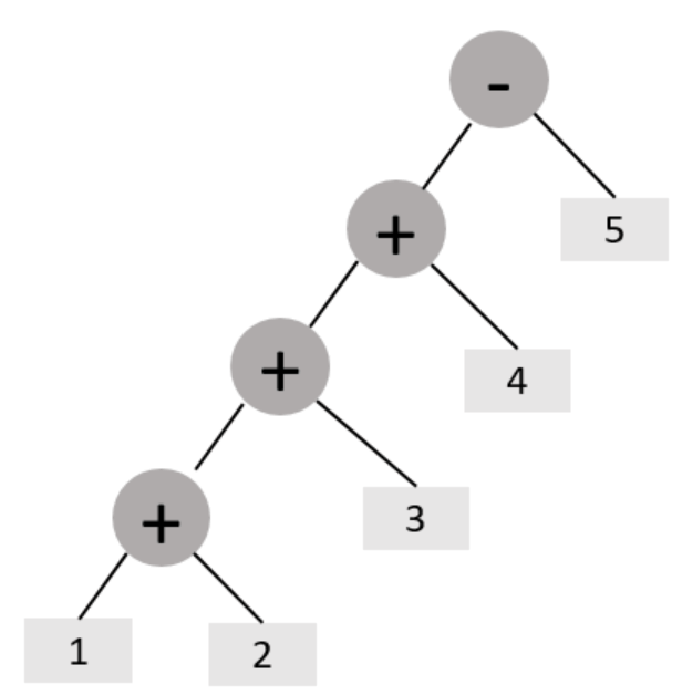 上面的形式比较单一、有限,如果形式变化非常多,这就不符合要求,因为加法和减法运算,两个运算符与数值可以有无限种组合方式。比如 1+2+3+4+5、1+2+3-4 等等。