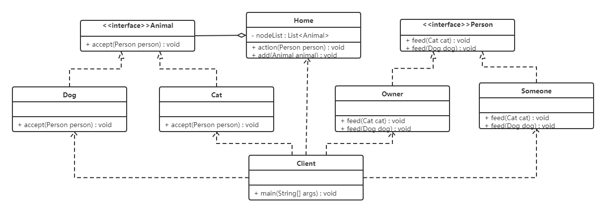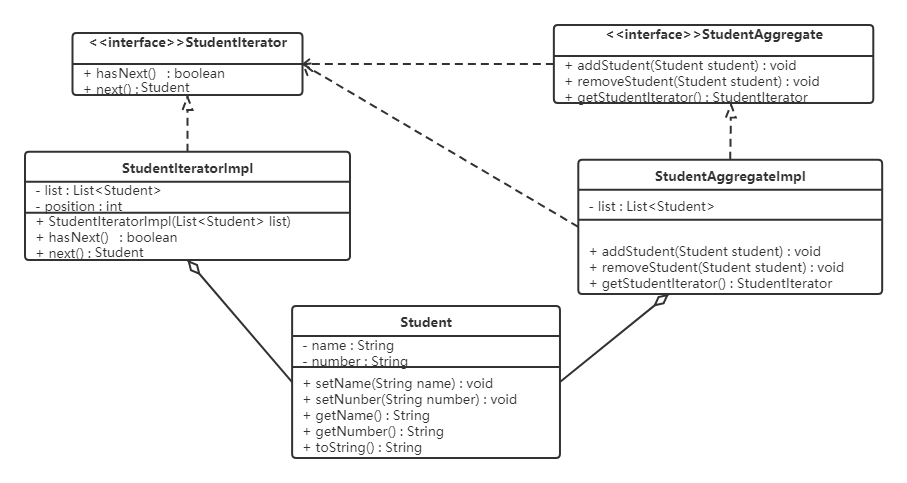 备忘录角色对发起人对象提供一个宽接口,而为其他对象提供一个窄接口。在 Java 语言中,实现双重接口的办法就是将备忘录类设计成发起人类的内部成员类。