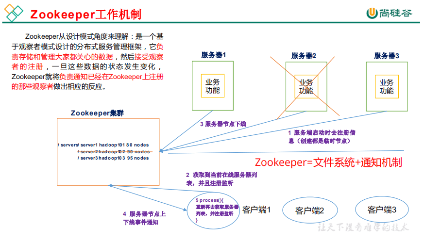 • 一旦 ZNode 中的数据被修改,zookeeper 将通知各个客户端服务器